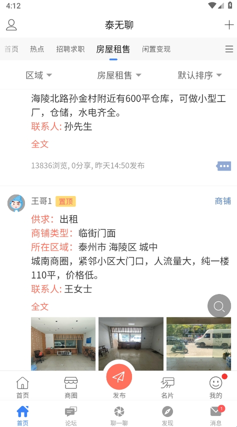 3、招聘、聊天、找工作、租房都能在这里搞定