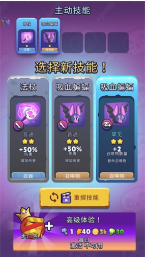 2、进入关卡后需要选择一个初始技能来进行战斗,选好技能后就会正式开始。