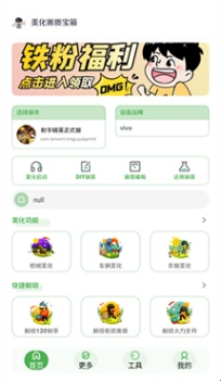 1、打开美化画质宝箱,进入首页,支持相应的美化启动、diy画质等等。