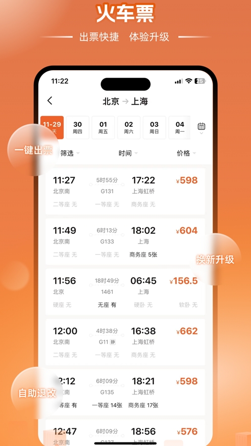 企橙商旅手机客户端是操作简单一目了然的差旅app,支持上传火车票作为报销的凭证,十分的清楚又不用担心弄丢。可以在软件上查询余票信息,并且可以直接在线预购车票。