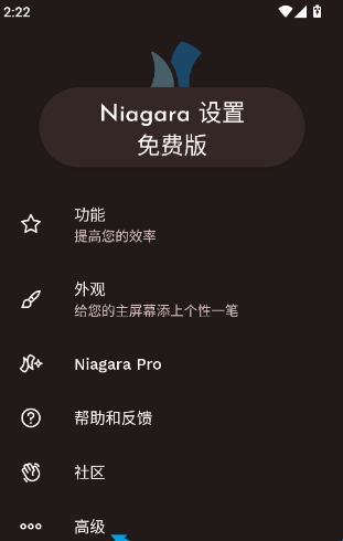Niagara桌面启动器又叫Niagara Launcher,是一款专为手机桌面打造的软件。支持用户自定义设置桌面,如定制桌面网格数、图标大小等,支持第三方图标包设定等等,打造一个独属于你自己的手机桌面。而且软件没有任何广告,只有一张任你布置的桌面,享受最纯净的软件。