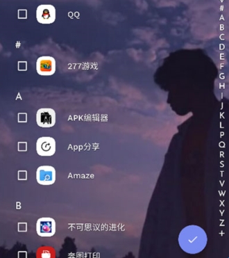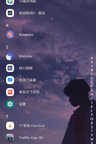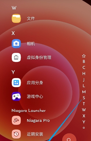 3、如果你想查找哪个应用,就点击那个应用的首字母,你手机中所有的应用都是按照首字母进行排序的。