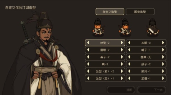 3、你可以自定义你的江湖造型,然后点击下一步;