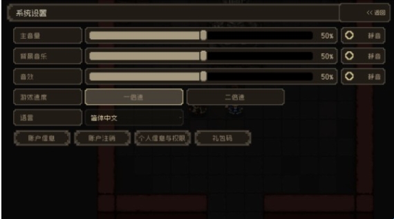 9、点开系统设置,可以设置主音量、背景音乐、音效、游戏速度等等。