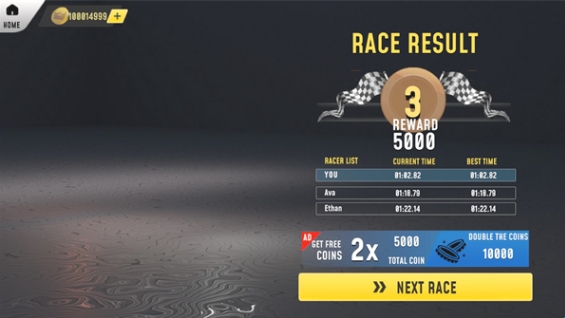 4、驾驶你的车辆以最快的速度重现终点完成比赛,完成比赛后会根据你的成绩来获得不同的奖励。