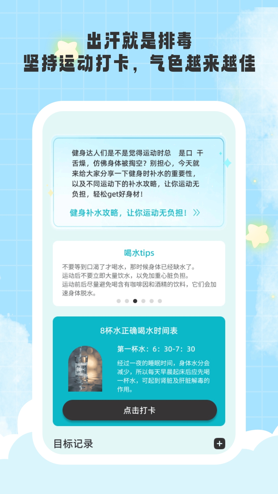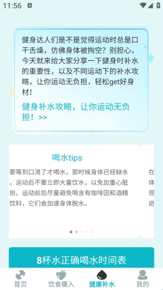 4、点击【健康补水】进入,了解到更多喝水知识,还可以来进行喝水打卡。