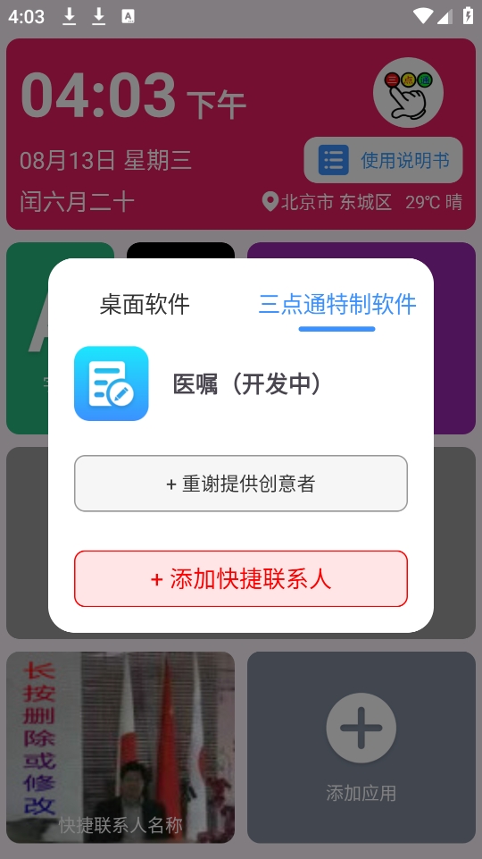 2、在首页添加常用功能或联系人,放到桌面一键使用。