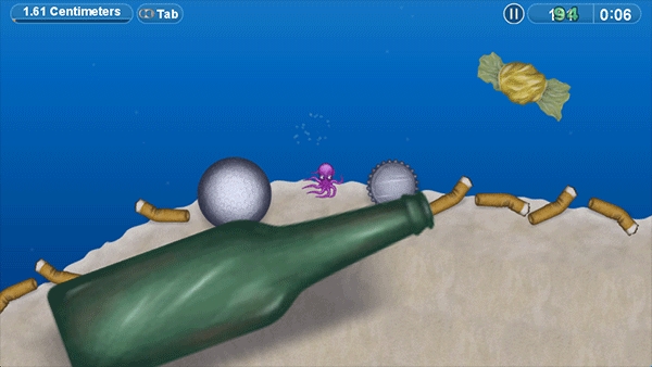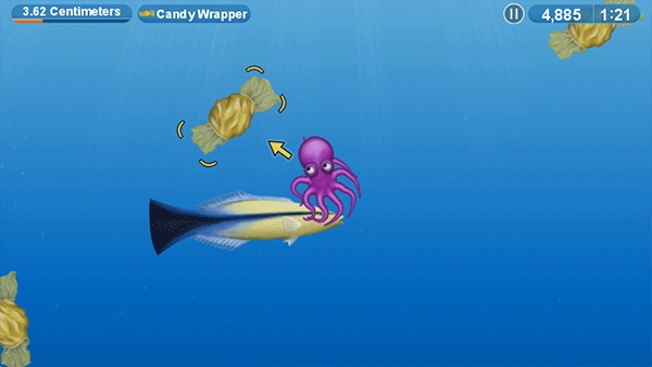 4、通过移动小章鱼进行吃垃圾,时间花的越少评价越高