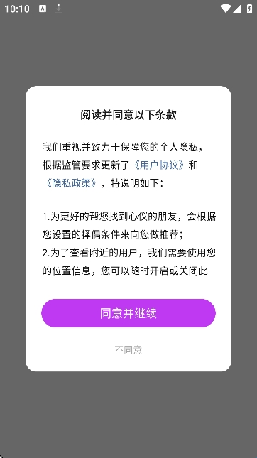 2、首先请同意用户协议和隐私政策;