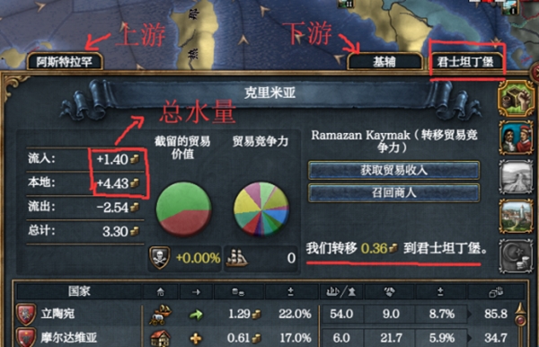 占领具有贸易加成的战略地区能极大提升竞争力,例如君士坦丁堡对奥斯曼帝国至关重要,控制它即可主宰区域贸易。