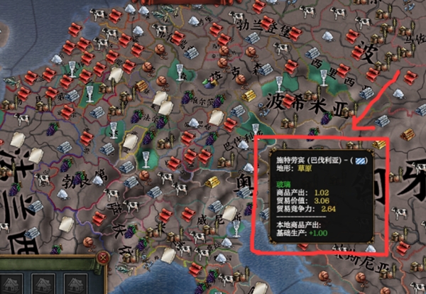 生产收入取决于省份的外交发展度及物产类型。外交点数相对宽裕,玩家常利用其提升产地效率。不同资源价值差异显著,如丝绸、象牙收益丰厚,而谷物、羊毛则较为普通。选择高价值商品产区进行投资,能显著提升生产效率。