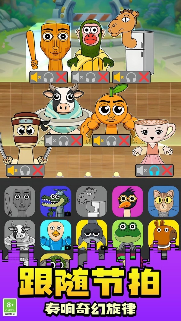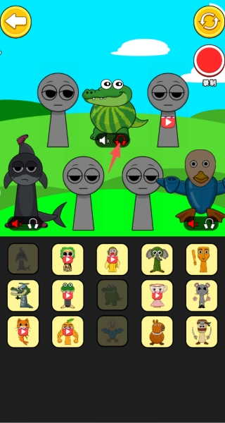 2、为选中的怪物搭配不同音符,通过点击开关与喇叭调整音效细节,打造贴合主题的独特节奏旋律。