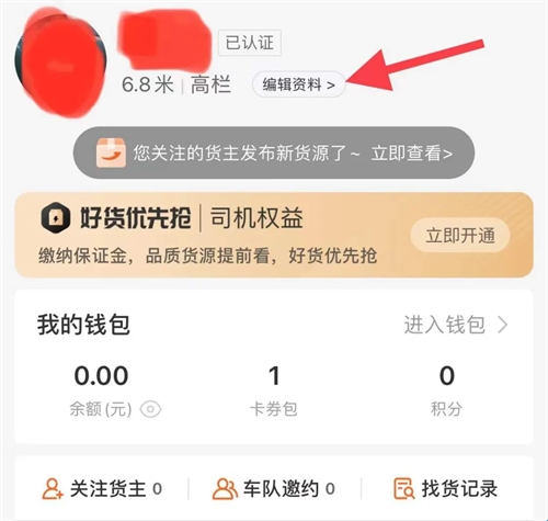 4、上传行驶证和车辆照片依旧是从头像旁的“编辑资料”点击进入,行驶证上传主页、副页,必须拍清楚、拍全,行驶证可以是公司户和个人户。如果是半挂车,车头和挂的行驶证都需要上传哦。接下来是车辆照片: