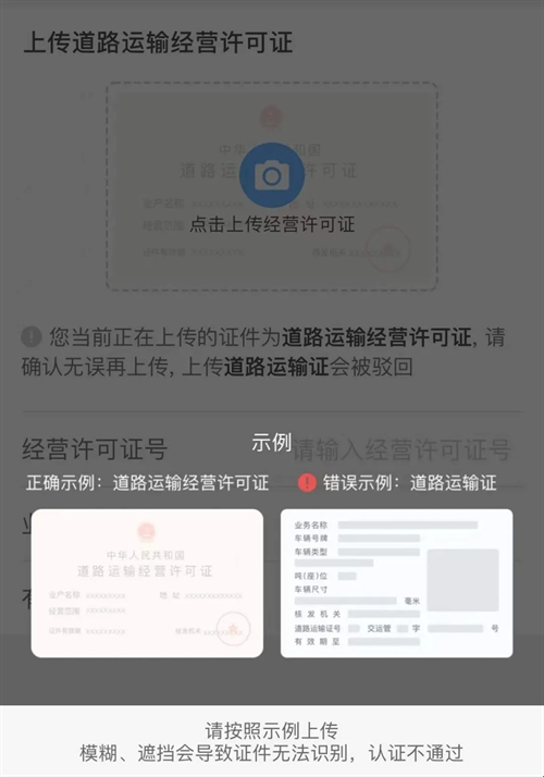 6、道路运输经营许可证这个证件属于挂靠公司的资质,如果车辆是公司户,需要上传这个。如果是个人户则不需要。