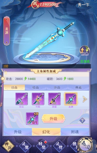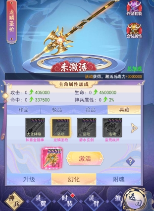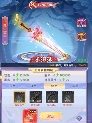 法宝需要消耗对应的法宝道具进行激活,激活后可继续升级,激活、升级都可为主角增加属性。