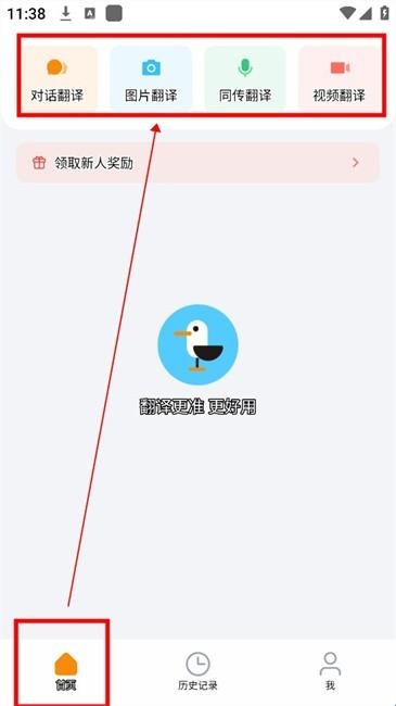 3、进入app后在【首页】找到所需翻译功能,这里以对话翻译为例