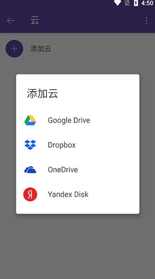 点击云,点击添加云,找到你有用的云盘,登录账号即可在主页看到云盘内的内容。