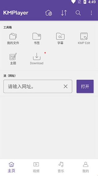 下载本站文件安装后打开kmplayer安卓播放器;