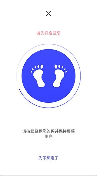 3、在新打开的页面中按照指示开启手机蓝牙,并持续轻踩你的秤,以及保持手机屏幕常亮,然后等待片刻即可连接成功