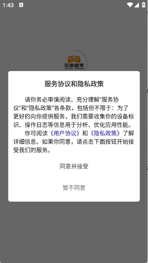 1、用户首先在本站下载乐游租号app,查看并同意隐私政策与用户协议。