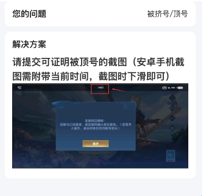 老板如果出现在租的过程有人挤,可能是号主不小心登录了重新上号。看看还挤不挤,如果还挤的话下拉状态栏把挤你的的时间截上图+游戏挤的提示截张图去维权申请退款并且我们也会惩罚号主,把他的商品权重给他降低,以后不推广记住安卓手机的话一定要加上时间的截图才能维权苹果手机不需要截图时间拿着被挤的截图去维权就行了