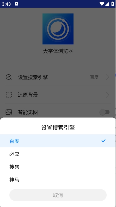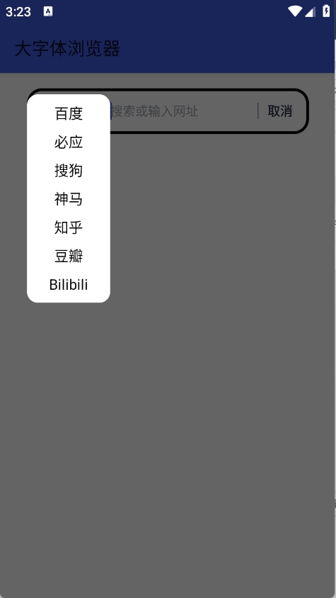 大字体浏览器是一款极速轻量的手机浏览器。软件内置百度、必应、搜狗、神马等常用的搜索引擎,用户不仅可以自由搜索,还能输入特定网址,进入想看的阅读页面,同时软件也拦截了各种广告弹窗,带给用户纯净的使用体验。软件除了拥有基础功能外,还有字体放大功能,让更多用户能够舒适的进行操作。感兴趣的朋友们欢迎下载体验。