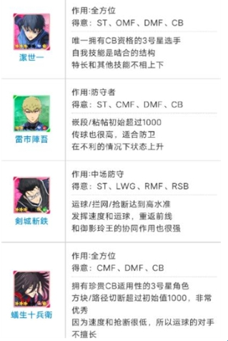 1、SS级:国神炼介、凪诚士郎、马狼照英、士道龙圣