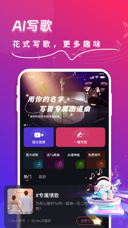 快歌app是由深圳市快歌智能有限公官方产品的ai写歌创作app,快歌软件操作简单,使用便捷,不仅可以AI写歌,还能一键生成音乐MV,创作很简单,让每一位音乐爱好者都能自己写歌,创作出自己的专属味道,喜欢就不要错过哦