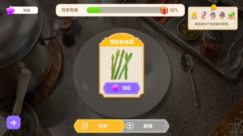 7、而在摆盘页面则可以使用星星对菜品的摆盘进行各种修改,每完成一次摆盘任务都可以获得不同的奖励。
