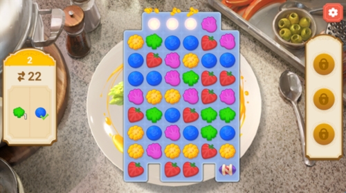 8、游戏内的三消玩法与大多数同类游戏玩法大致相同,只需将相同的水果移动到指定位置完成消除即可。