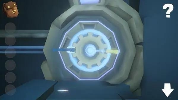 2、与右边的机关互动,转动转盘,把门升起来,进入下一个场景。