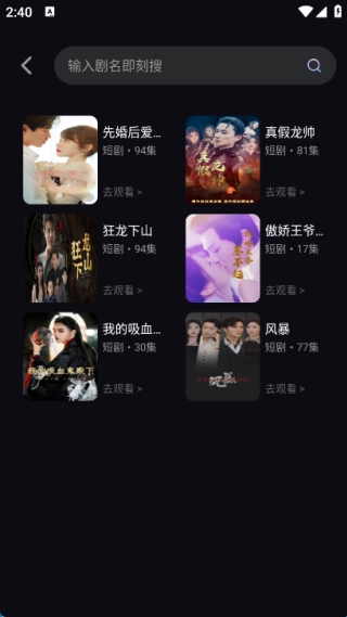 3、通过顶部搜索栏输入关键词,可快速定位感兴趣的短剧作品。