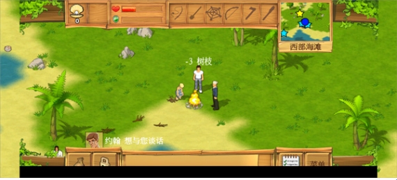 伊莎贝尔用浮木搭起了一个火堆,并告诉你峭崖有什么东西。将钓线和钓钩叫给迈克他会送你一把轻型钓竿,并且告诉你钓鱼的话还需要鱼饵。迈克还说他准备做木筏,需要浮木。