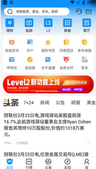 1、炒股利器Level2:长江版Level2,重新定义盯盘,满足股民看盘、预警、决策、选股的4大需求。千档透视,透过委托看懂主力意图;主力进出线,追踪主力进出踪迹;主力异动预警,超级单、闪电单、拖拉机单异动提醒。