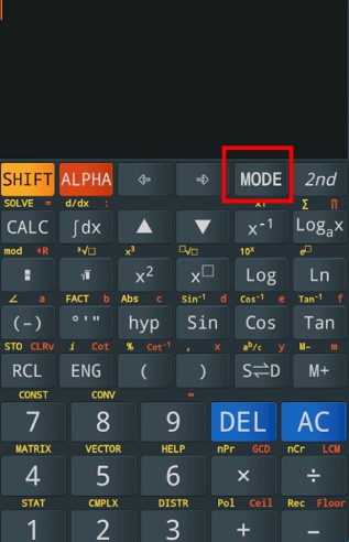 打开卡西欧计算器手机版进入页面后点击MODE键(下图红色方框区域)