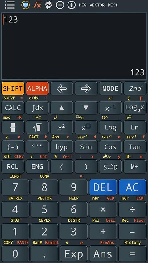 6、科学计算器支持fx 500,fx500,570vn plus,82ms和82 ms,82es&82 es,fx 4500,991es plus,991ms的大部分功能。