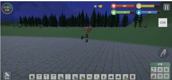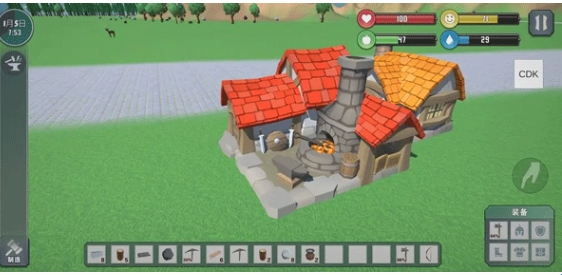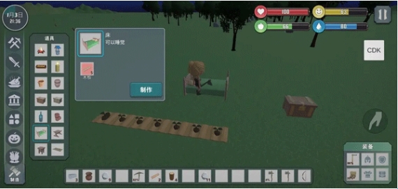 10、做个锄头,点一下地面,就能种买来的种子了,做个围栏,把小鸡儿放进去,记得关门。到了这里,基本的生活保证就算是有了,哦,记得做一个箱子和床。饿了就去杀小鹿,吃生肉,渴了去水井喝水,心情低了就睡觉。