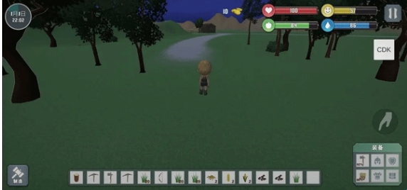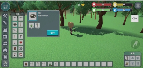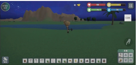 2、捡几个草堆,然后拿上斧头砍一棵树,做绳子和鞋子,鞋子可以加快移动速度,人手必备。然后就是继续捡草吧,顺便撸点树撸点石头也是可以的,但是草这东西,目前就出生地多,别的地方很少,所以这里弄草就行了。