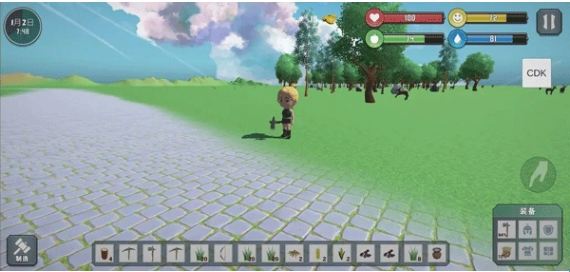 8、树、石头、铁要用相应的工具一下一下的砍,大概四五次左右,掉落的物品双击捡起来