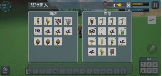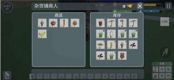 7、中间下面是小仓库,满了就把能吃的吃了,长按可以看物品功能