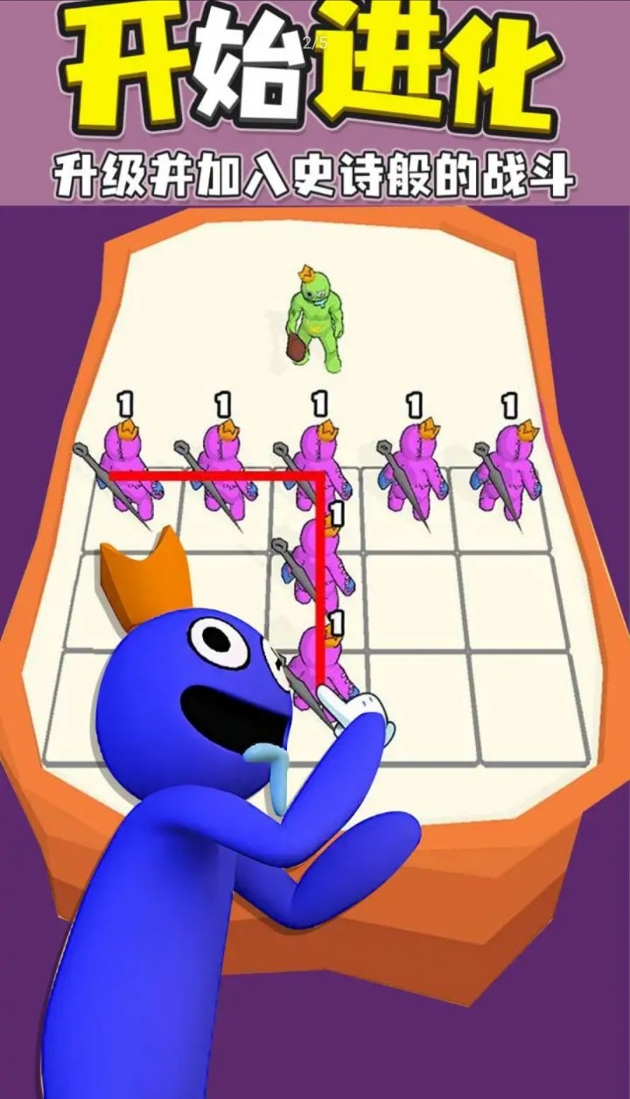 3、用你的手指画出彩虹朋友怪物并让它们进化。