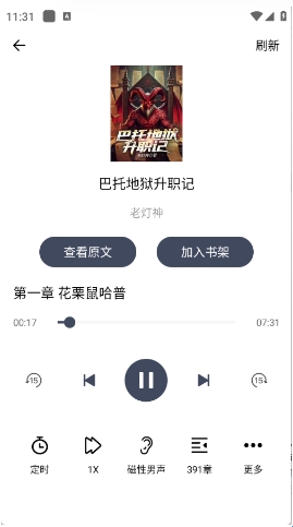 2、就可以进行听书了,可以设置定时、声音等。