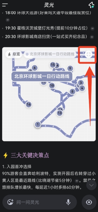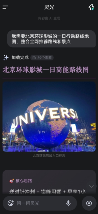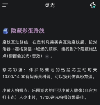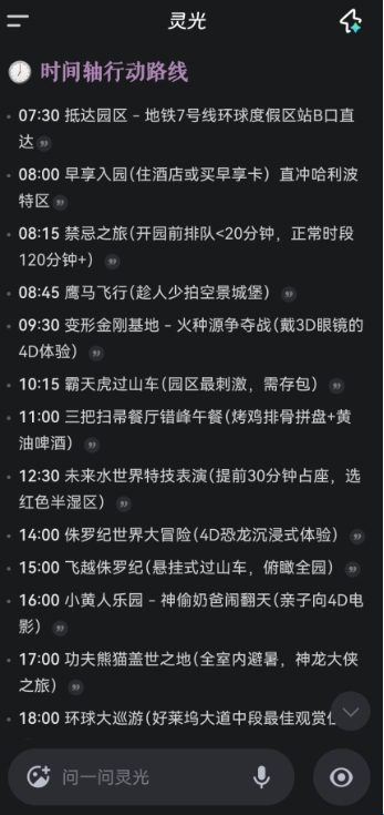 输入详细的目的地、关键词和你的要求,灵光App会自动生成大量的相关信息。