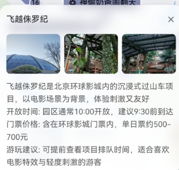 点击下方相关的游玩项目,会有简短介绍、开放时间和游玩建议等信息。