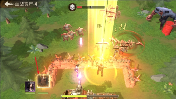2、战斗中,拖动下方的机枪即可左右移动射击。