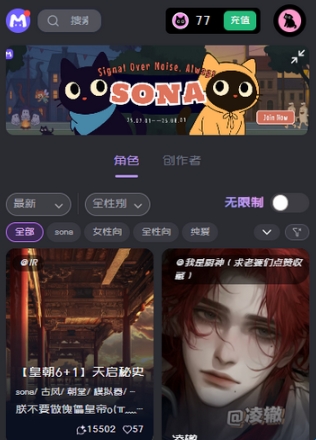 幕府Mumu又叫mufy AI,这是一款非常热门的手机ai聊天软件。在这里,你可以发现超多不同类型的智慧ai生命体,各种分类都在这里,有女性向、全性向、纯爱等等应有尽有,能够很轻松的满足用户使用的需求,适合喜欢沉浸式对话的用户。感兴趣的话就来下载吧!