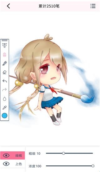 未上色的手绘稿画作,不需要颜料和画笔就能实现轻松上色,在漫芽糖指绘软件可以不断调整效果,直到满意。