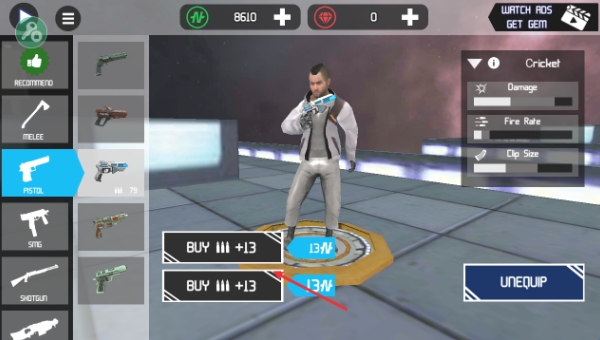 2、进入后选择左侧的武器栏,在这里可以挑选各种类型的武器。