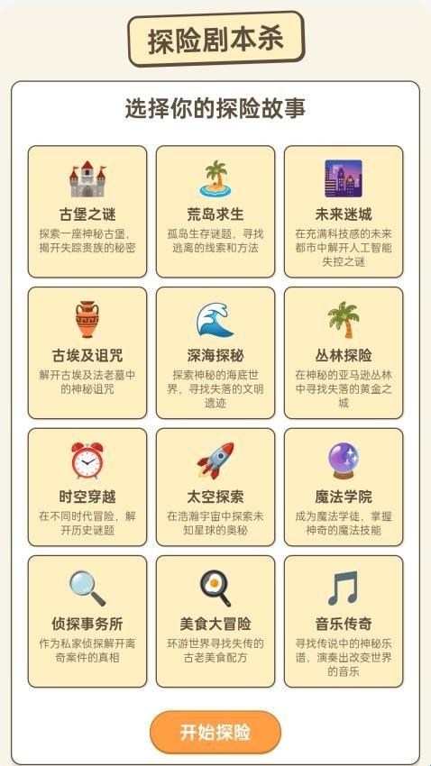 推出了多种探险故事,能够对相关的故事来实时探险,便捷实现多种故事的探险。