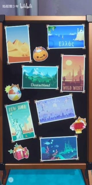 2、收集不同地区的明信片和猫咪贴纸,每收集一处地区的元素,可解锁该地区的相关内容。